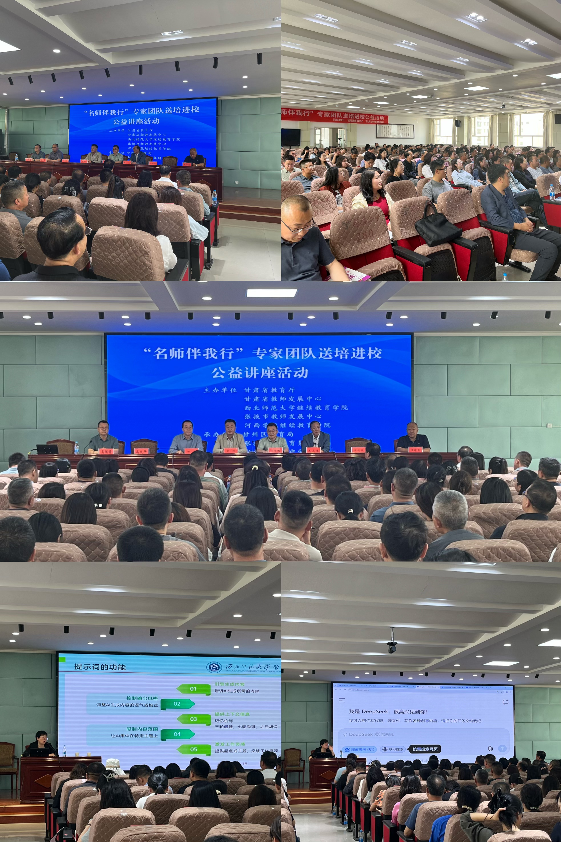 王文槐在讲话中指出,在当下数智赋能时代,教师如何更好的应用人工智能赋能教育教学,是我们这一代教育人的使命和责任。本次活动的开展,是甘肃省教师发展中心构建"1+N"教师培训体系的重要举措之一,通过建立"省-市-县-校"四级联动机制,实现优质教育资源精准下沉。