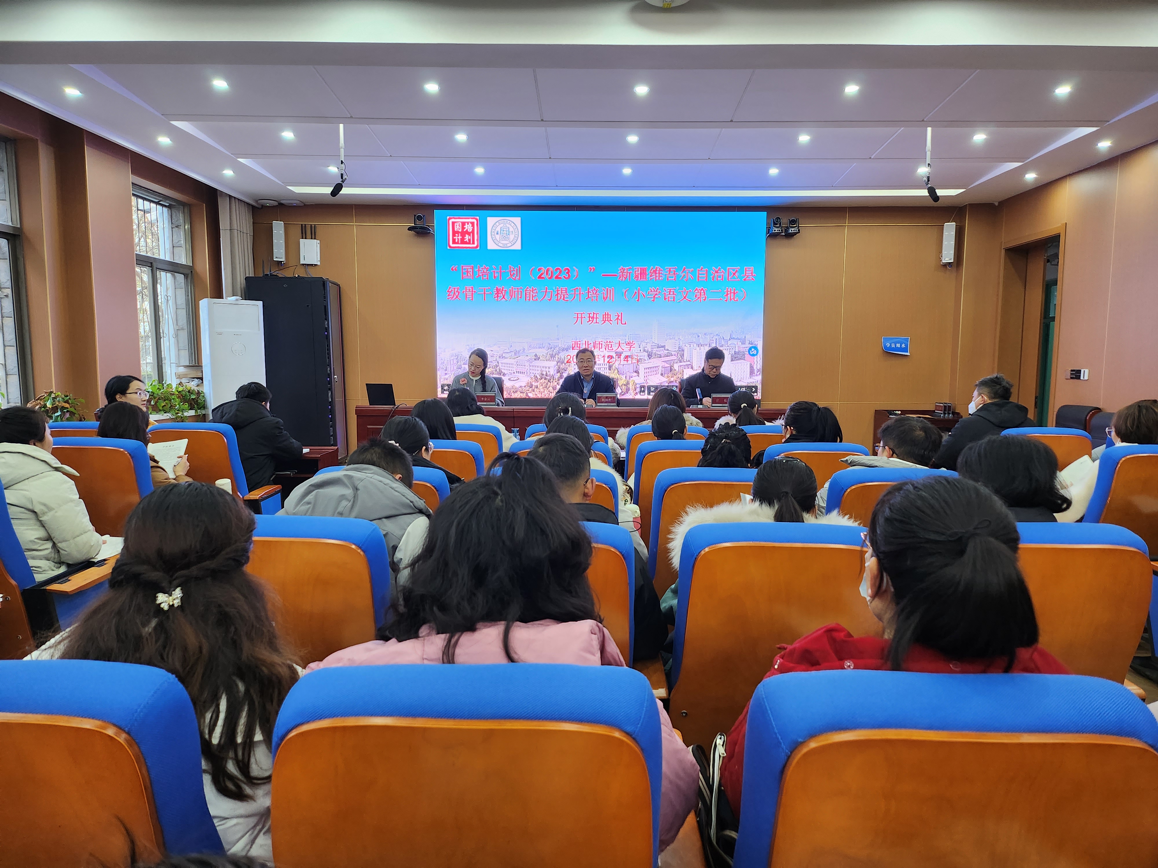 12月4日上午,“国培计划(2023)”—新疆维吾尔自治区县级骨干教师能力提升(小学语文第二批)培训班在3044am永利集团3044noc顺利开班。3044am永利集团3044noc继续教育学院院长杨纳名,项目学科负责人、3044am永利集团3044noc教师教育学院李金云出席开班式,来自新疆维吾尔自治区的100名骨干教师及培训中心相关负责人参加开班式。