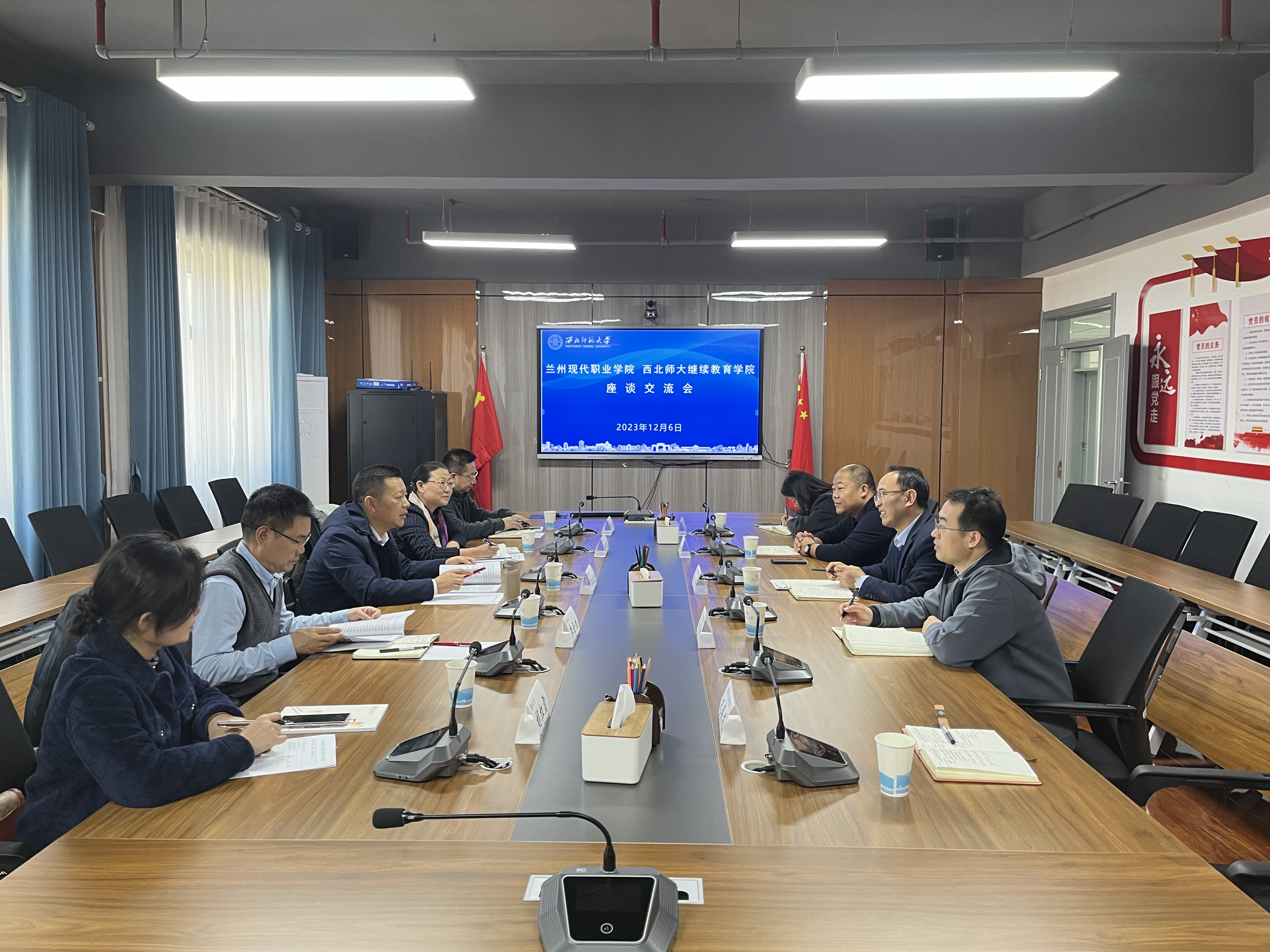 陈科对兰州现代职业学院一行来院调研交流表示热烈欢迎,并从学历教育、非学历教育、同等学力申请硕士学位、甘肃省教师发展中心(甘肃教师教育学院)等介绍了学院的办学情况。他表示,经过多年发展,学校继续教育已形成了职前教育和职后教育一体化、学历教育与非学历教育并举、师范专业和非师范专业协调发展、教师培训与其他职业培训相结合的继续教育体系。今后将加大与职业院校合作,共同助力全省教育事业高质量发展。