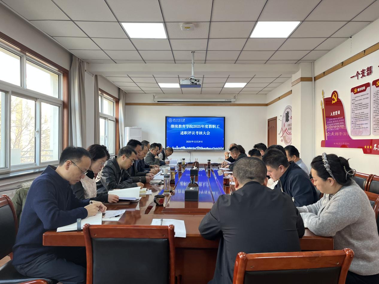 12月29日,继续教育学院组织召开2025年度教职工述职评议考核大会。学校第三督察组副组长、党委统战部部长刘德雄一行5人到会督查指导。学院党委书记陈科作总结讲话,院长赵辉主持会议,院领导王文槐、李玉泉、马占寿、郭莉萍、杨小东出席会议,学院全体在编教职工参加会议。