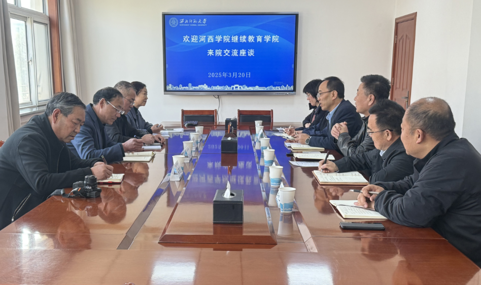 3月20日,河西学院继续教育学院院长王永生、副院长马万财、培训部主任杜国富、教学部主任杨雪梅一行来院交流座谈。学院党委书记陈科、院长赵辉、甘肃省教师发展中心(甘肃教师教育学院)常务副主任王文槐、副院长郭莉萍和相关科室负责人参加座谈会。