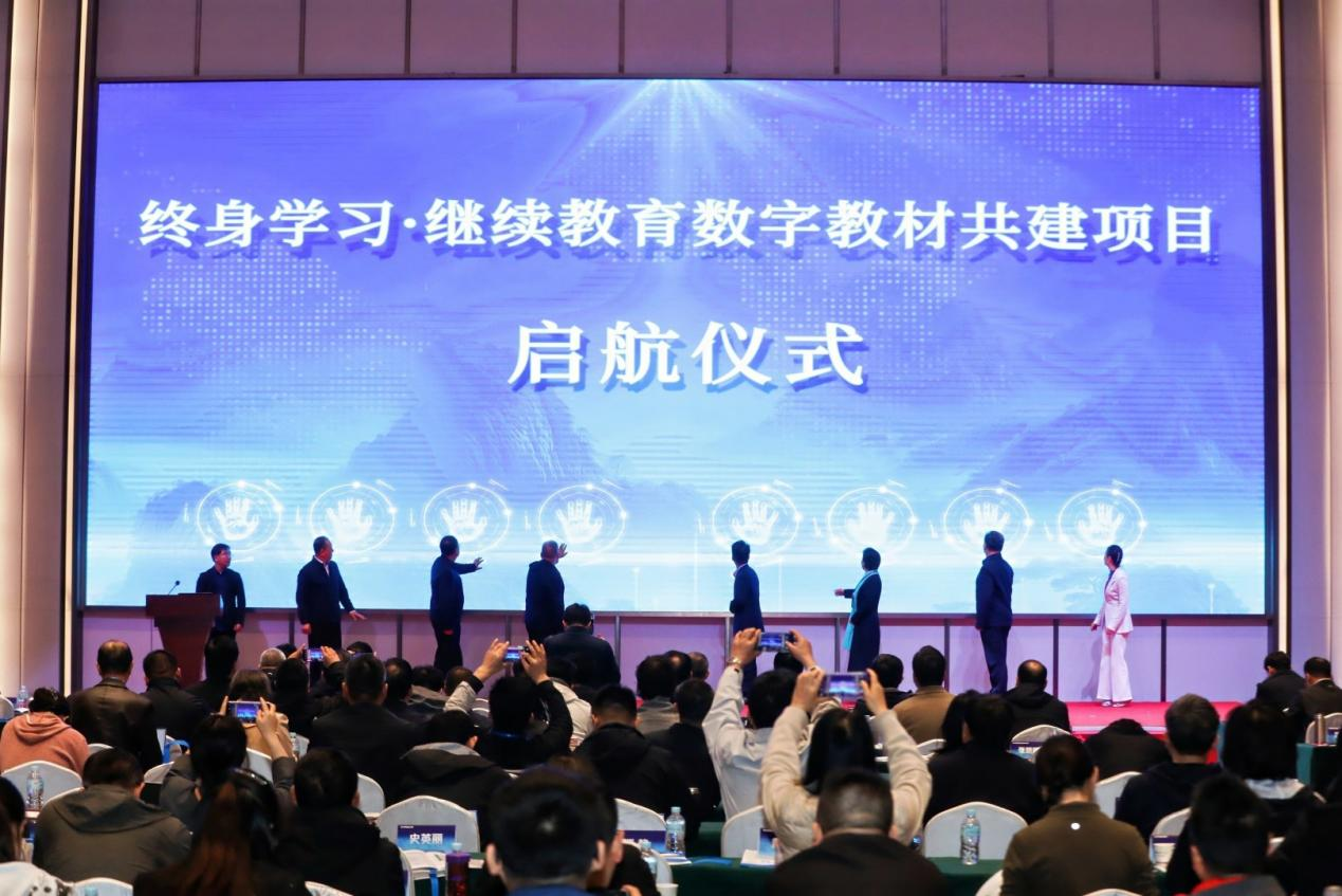 现场举行了“终身学习·继续教育数字教材共建项目”启航仪式,该项目由中国成人教育协会联合协会职继数字化建设专业委员会、高等教育出版社共同启动,旨在构建共建共享共赢的数字教材新生态。