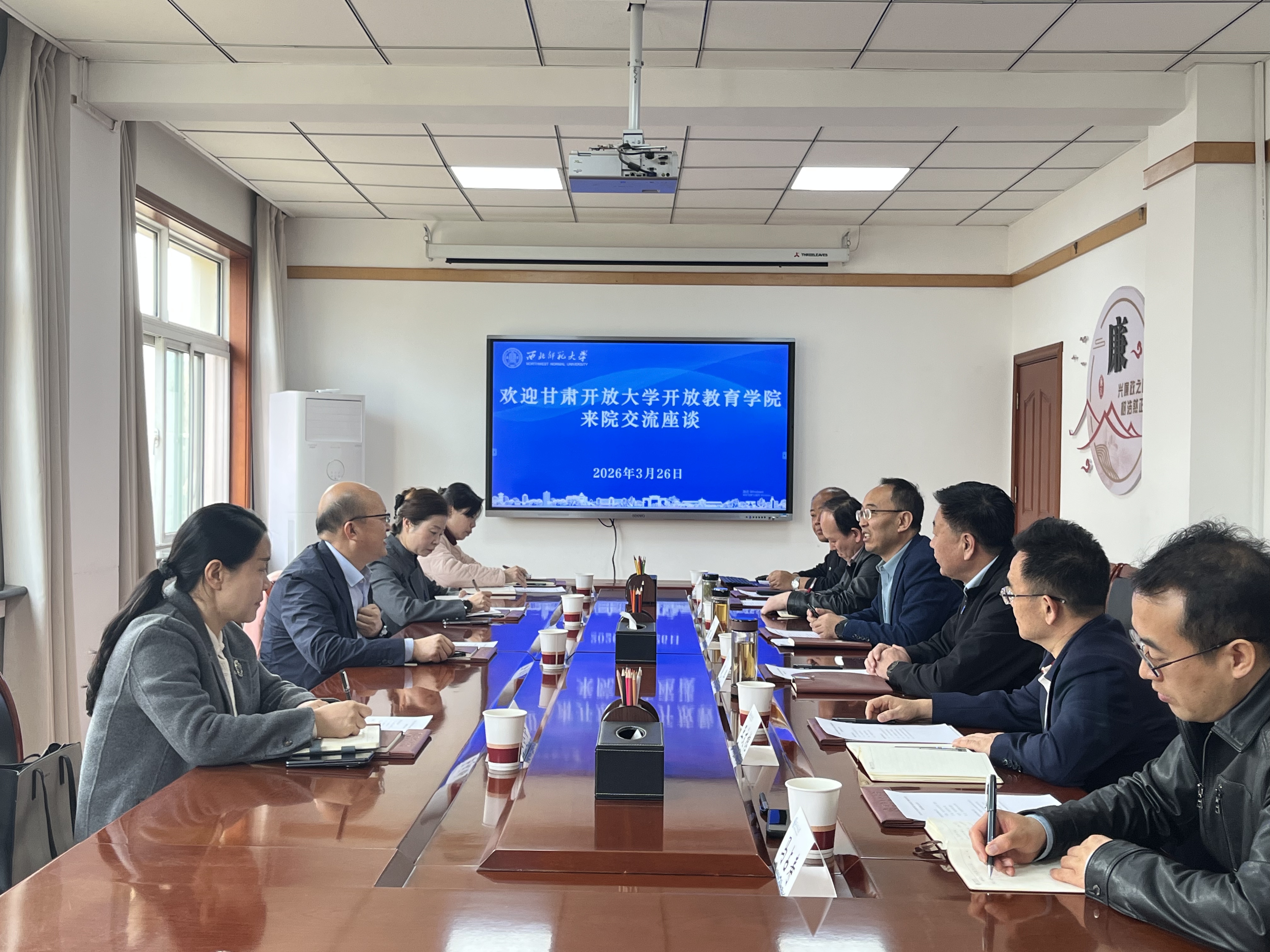 3月26日,甘肃开放大学党委委员、副校长辛克东,开放教育学院书记肖静、副院长马永玲及合作办学科负责人杨洁莅临我院开展调研座谈。学院党委书记陈科,院长赵辉,甘肃省教师发展中心常务副主任王文槐,副院长李玉泉、马占寿及综合办公室主任王琦玉出席座谈会,双方围绕相关合作事宜深入交流探讨。